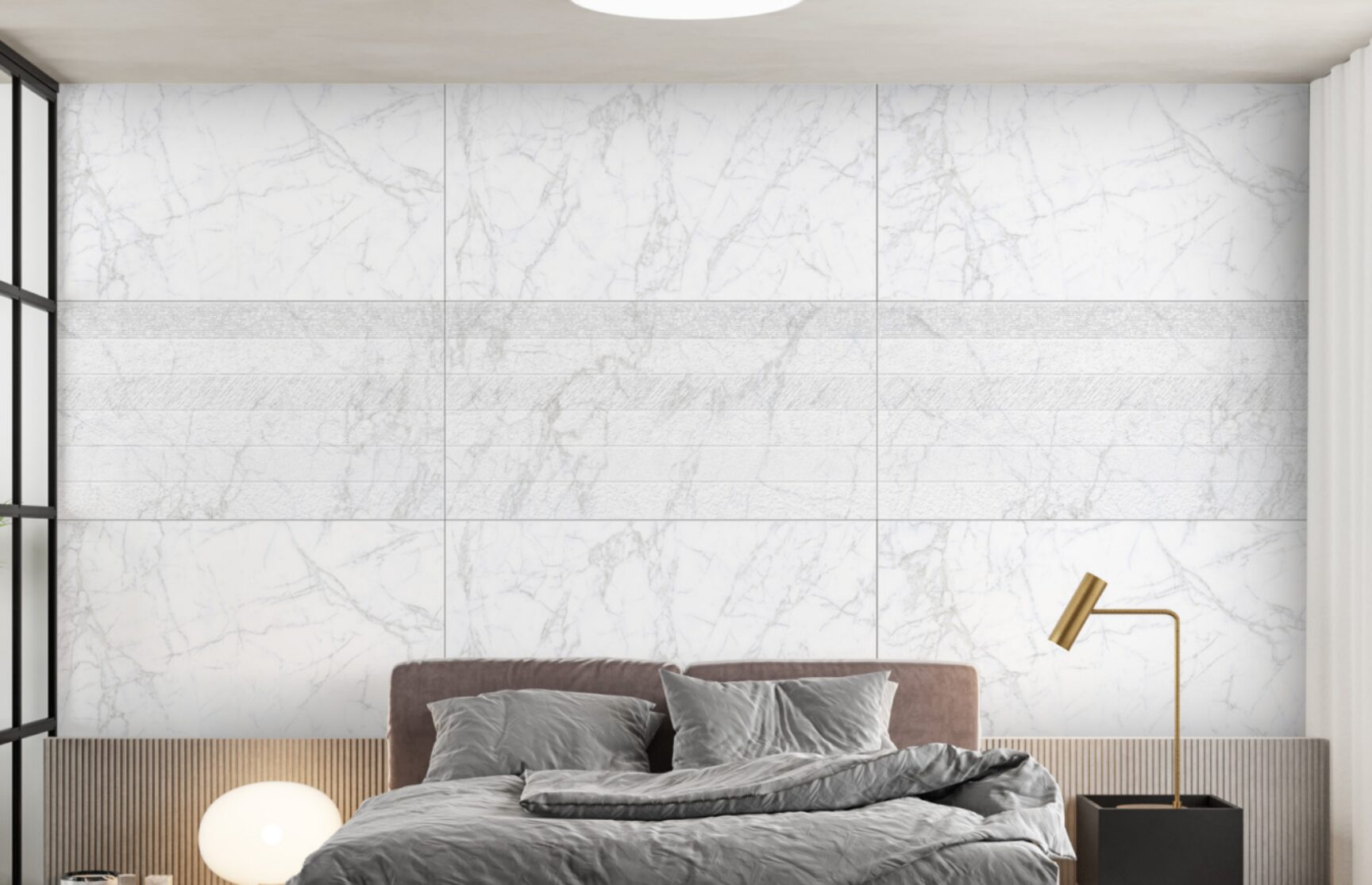 Aaras White Decor with a 6 Strap Punch finish and Aaras White in a Matt finish complement each other perfectly for modern and tranquil interiors that are also stylish and practical. It is a decorative texture that enhances a feature wall with delicate detail, while this offers a calm base in a smooth matt finish that is perfect for a floor or wall. They are also ideally suited for installation in kitchens, bathrooms, living areas and offices. Both options combine functionality with elegant design in a range of applications. They are also made to last, with resistance to scratches, stains and general pick–up from everyday living: you get the clean fresh aesthetic with long lasting visual appeal! Their size (600x1200mm), allows for an expansive appearance through less grout lines in any space, as well as low-maintenance surface areas perfect for contemporary living. Together they create a union of supreme functionality, and elegant style, to any interior.